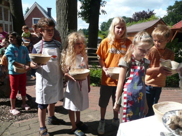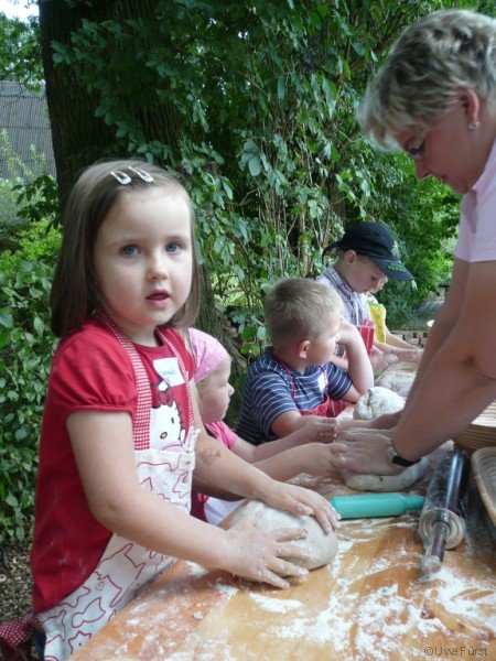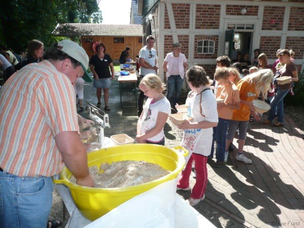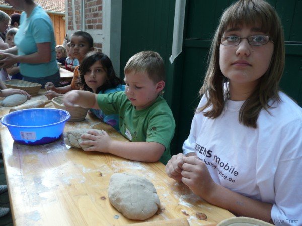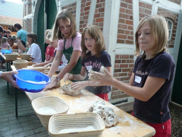 Am 16. August haben wir unseren diesjährigen Backtag bei der Klönstuv veranstaltet. Über vierzig Kinder konnten ein rustikales Roggenbrot und einen Zopf aus Stutenteig backen. Das Wetter hat wieder einmal mitgespielt. Bei Wasserspielen und Glücksrad verging die Zeit, in der das Brot im Ofen backen musste wie im Flug. Am Ende des Tages konnten alle Kinder ihr Brot mit nach Hause nehmen und ihren Eltern eine Kostprobe geben.